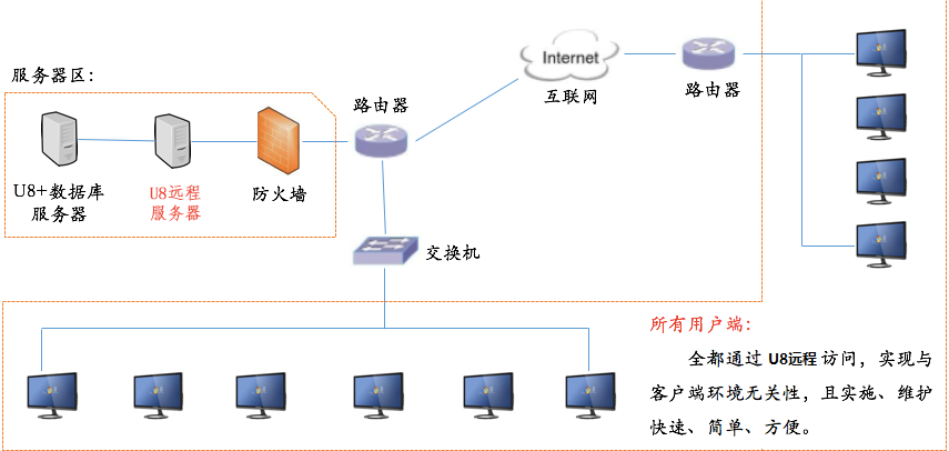 遠程為企業提供了一種從中心點集中管理應用程序遠程接入方法。可以足不出戶完成遠端的U8功能操作。U8+ B/S化部署拓撲圖: 免責聲明:本站部分圖片和文字來源于網絡收集整理,僅供學習交流,版權歸原作者所有,并不代表我站觀點。本站將不承擔任何法律責任,如果有侵犯到您的權利,請及時聯系我們刪除。