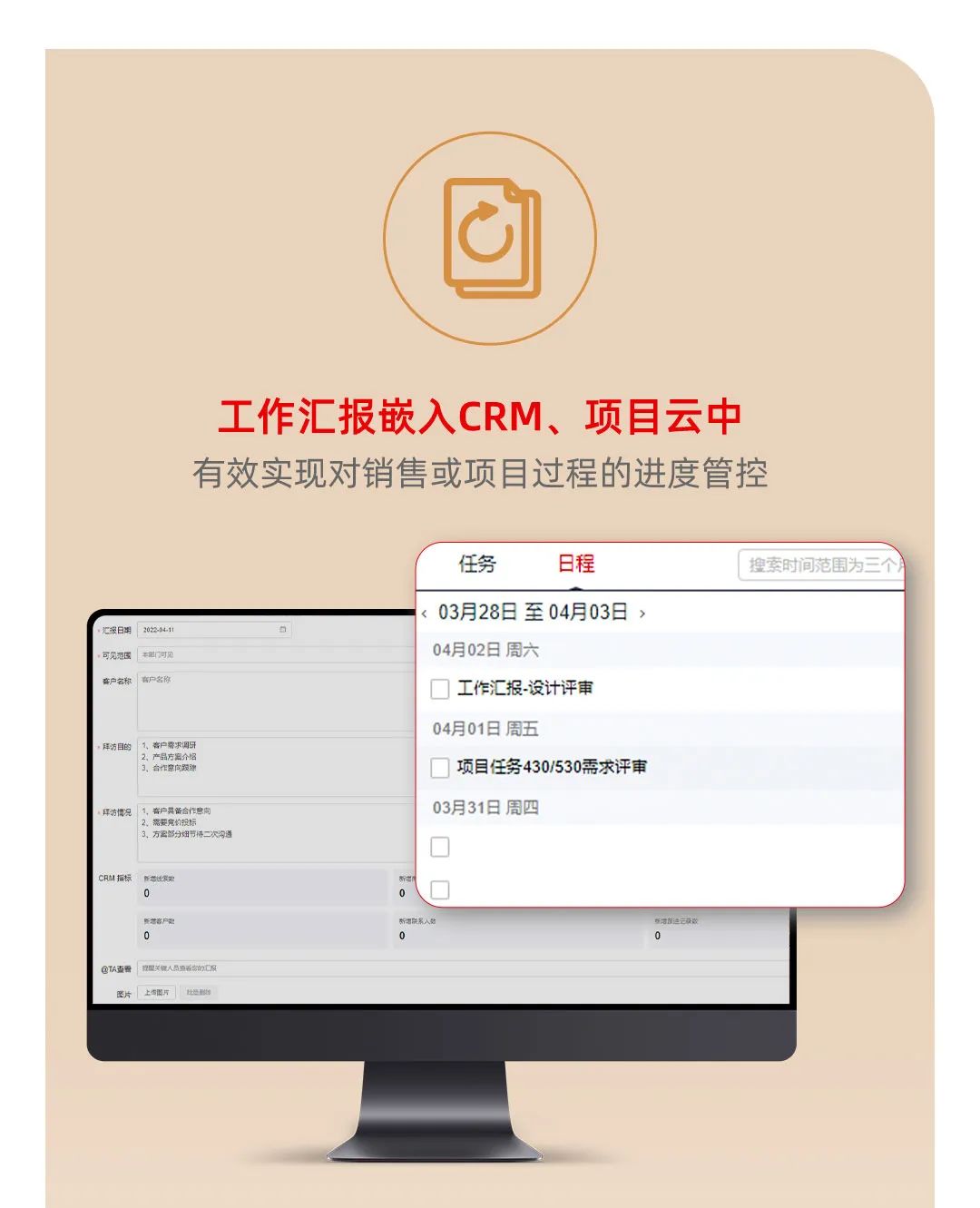 舉個常見的場景,我們每個人都需要寫工作匯報,YonSuite支持將匯報內容嵌入銷售過程以及項目進度管理過程中,客戶在使用客戶關系管理服務和項目服務的時候就可以直接看到每個員工的工作匯報,而不再需要在不同菜單下切換,這樣以來,對銷售或項目過程的進度管控將更加準確。