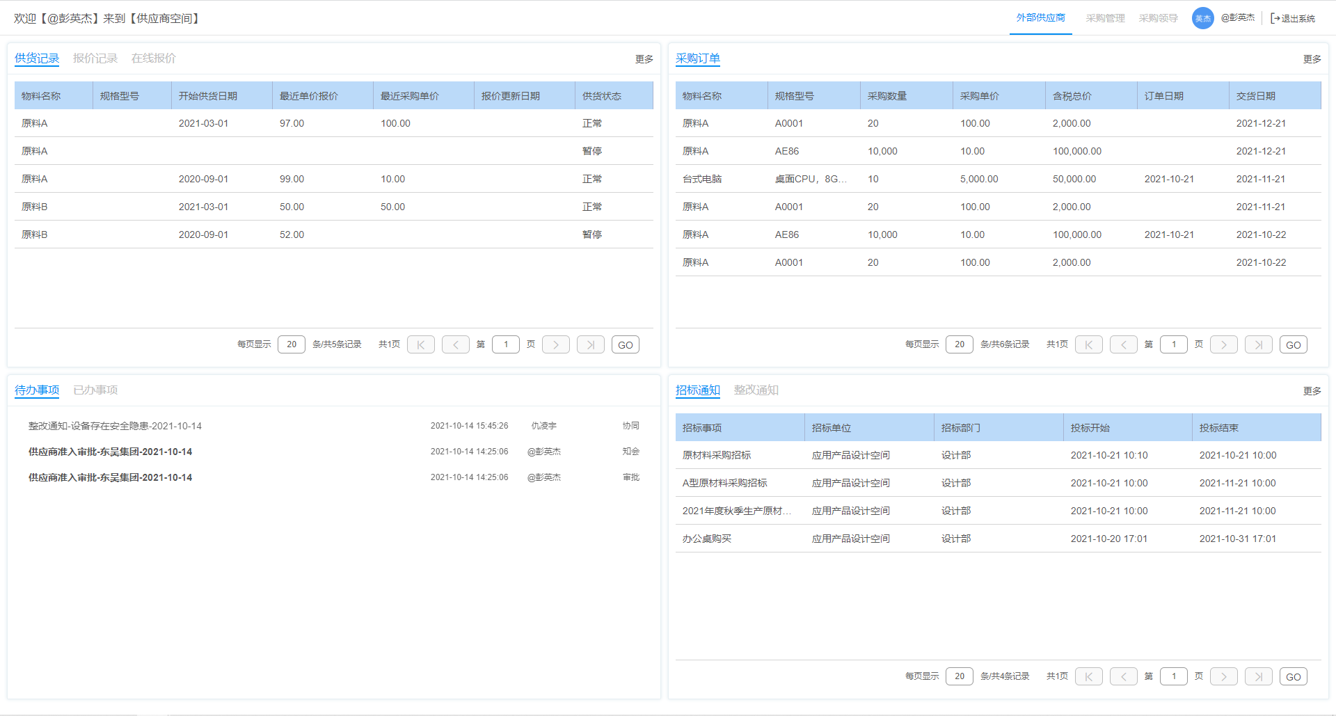 外部供應(yīng)商可以登錄供應(yīng)商門戶,在線更新自身供貨清單中的報價,或者根據(jù)招標信息在線投標。相關(guān)數(shù)據(jù)或流程直達采購的相關(guān)人員。