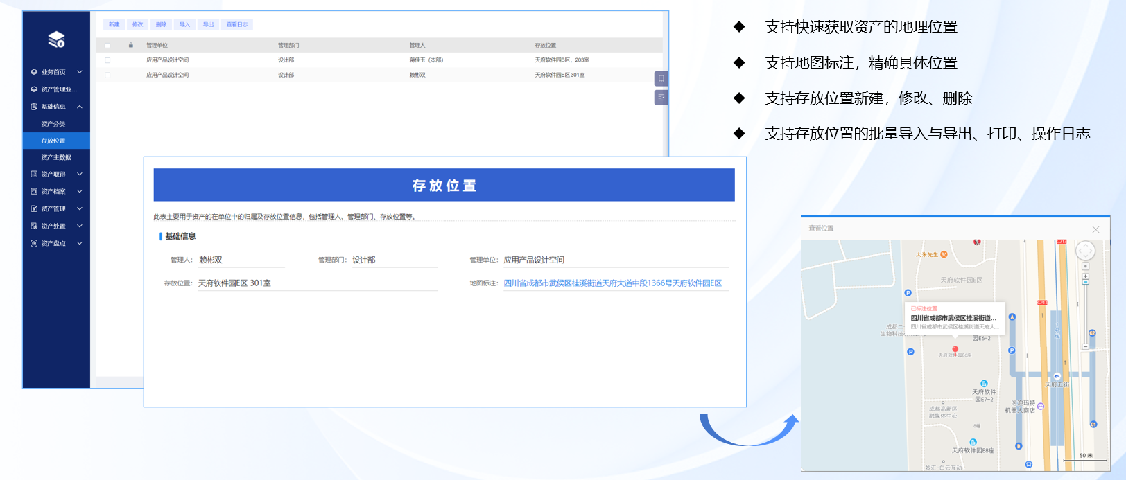 資產存放位置,記錄該位置對應的存放位置、管理人,明確資產管理權責。