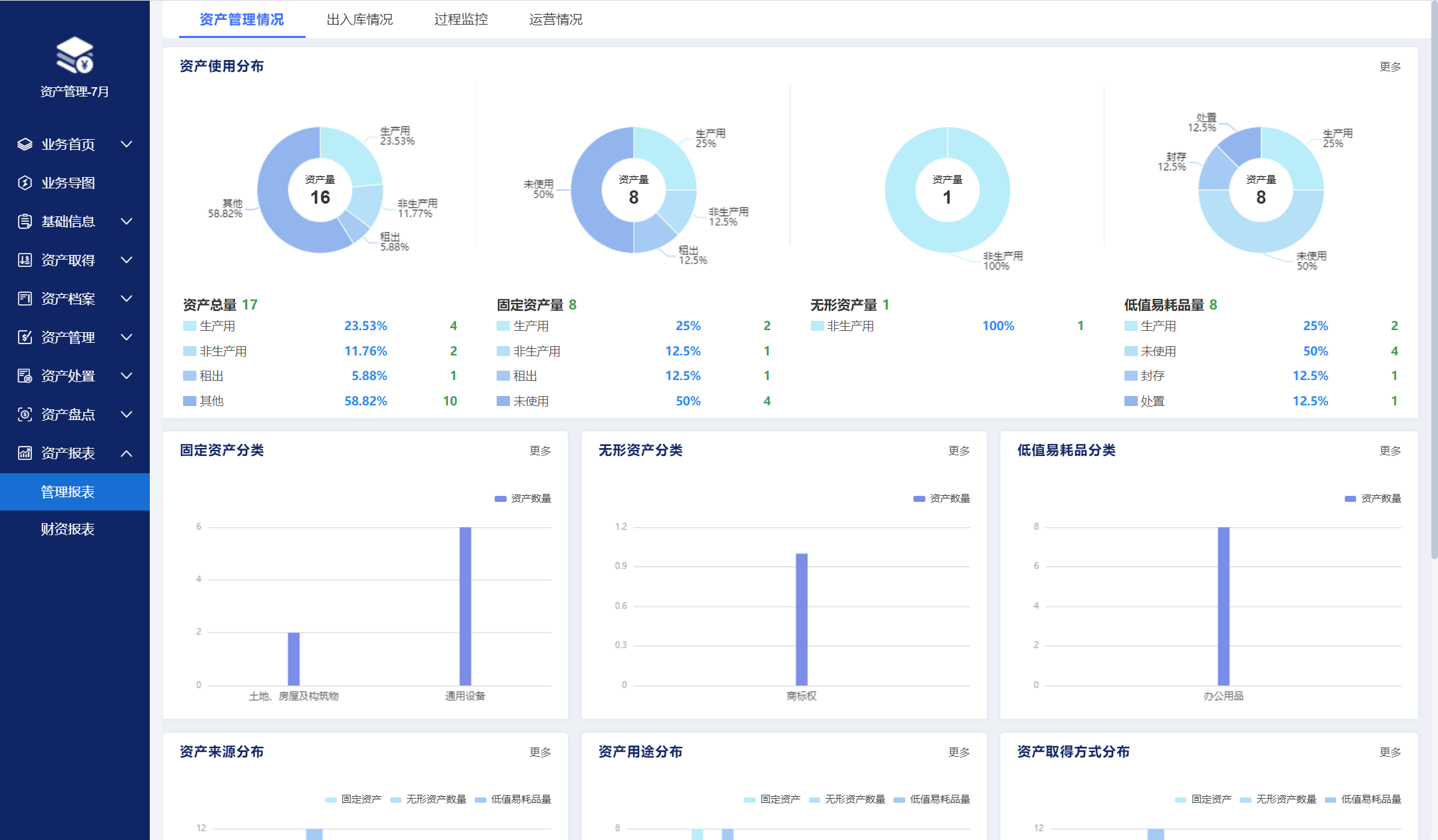 建立全資產輕量化“管理+監督”雙向協同模式,覆蓋資產運用的全生命周期管理,提高企業資產管理可靠性與使用價值,降低資產的養護維修成本、提升運行質量,加強和改進資產管理,提升資產使用效率。不同管理者可輕松地管控各個資產的使用情況、責任信息和變更記錄,提高固定資產或實物資產的利用率,避免單位在資產管理方面的損失,確保國有資產增值、保值。